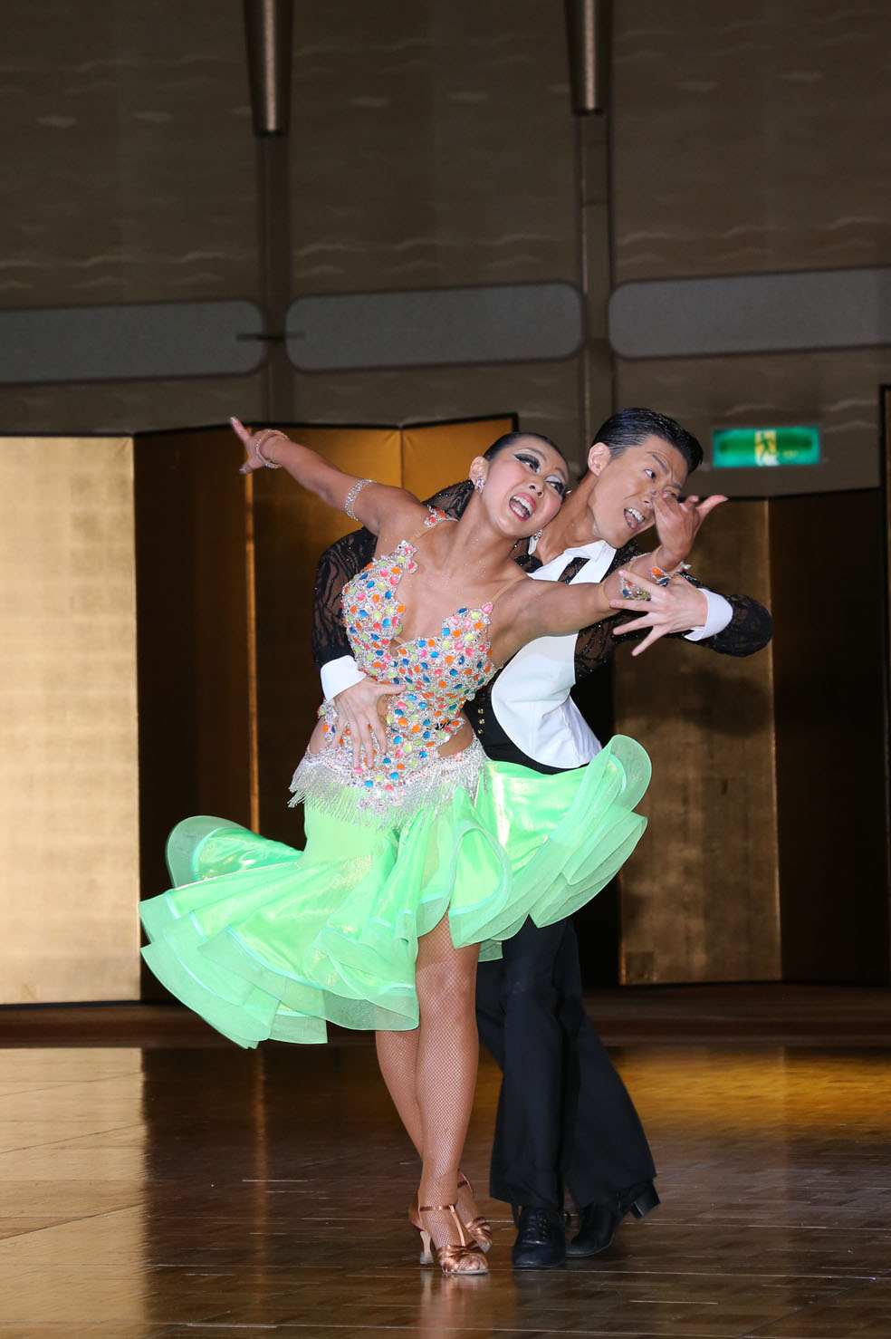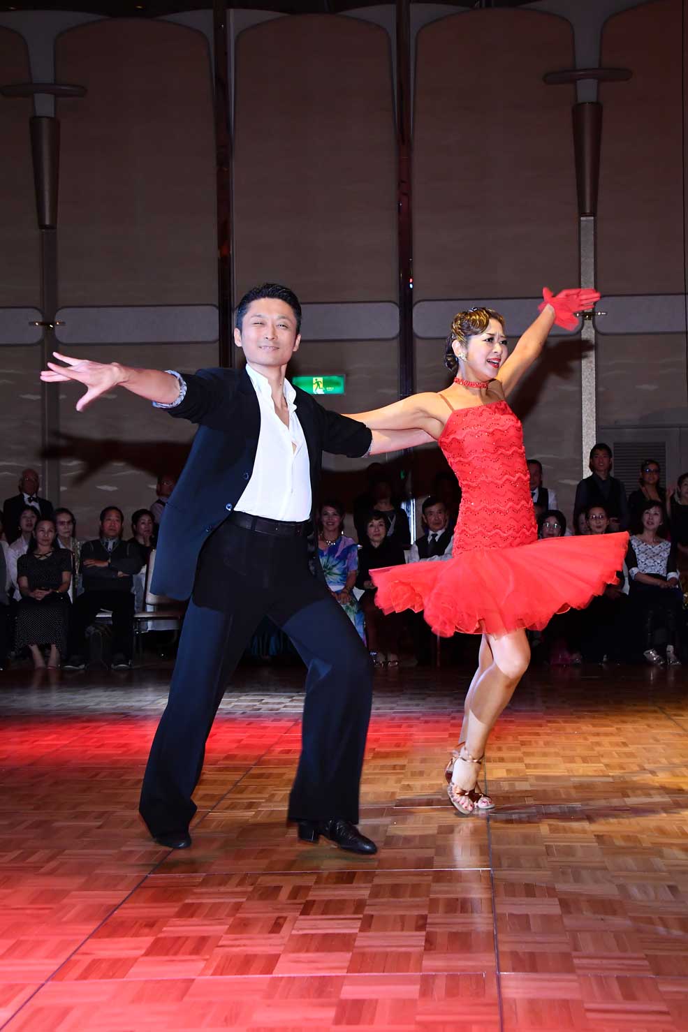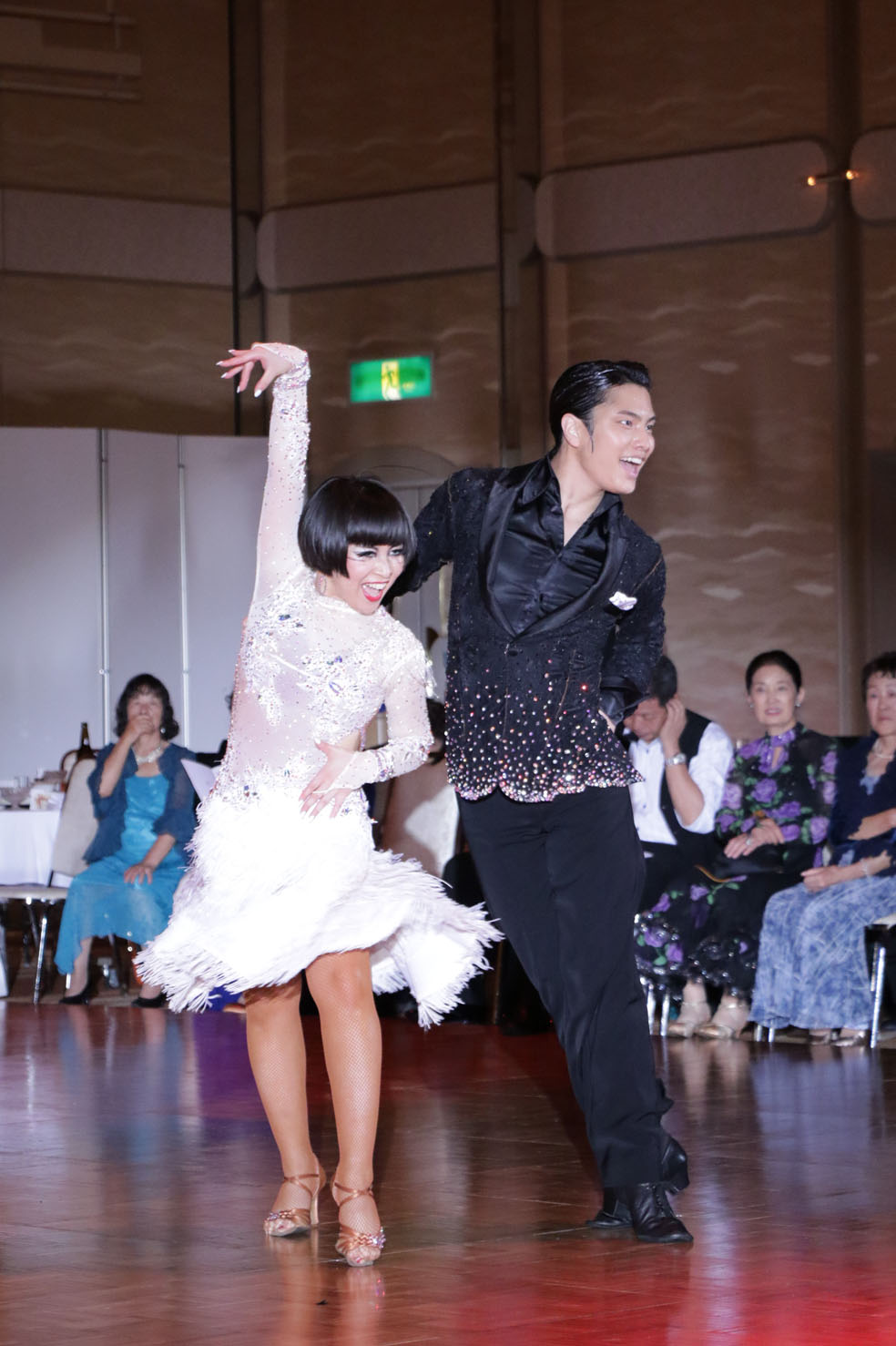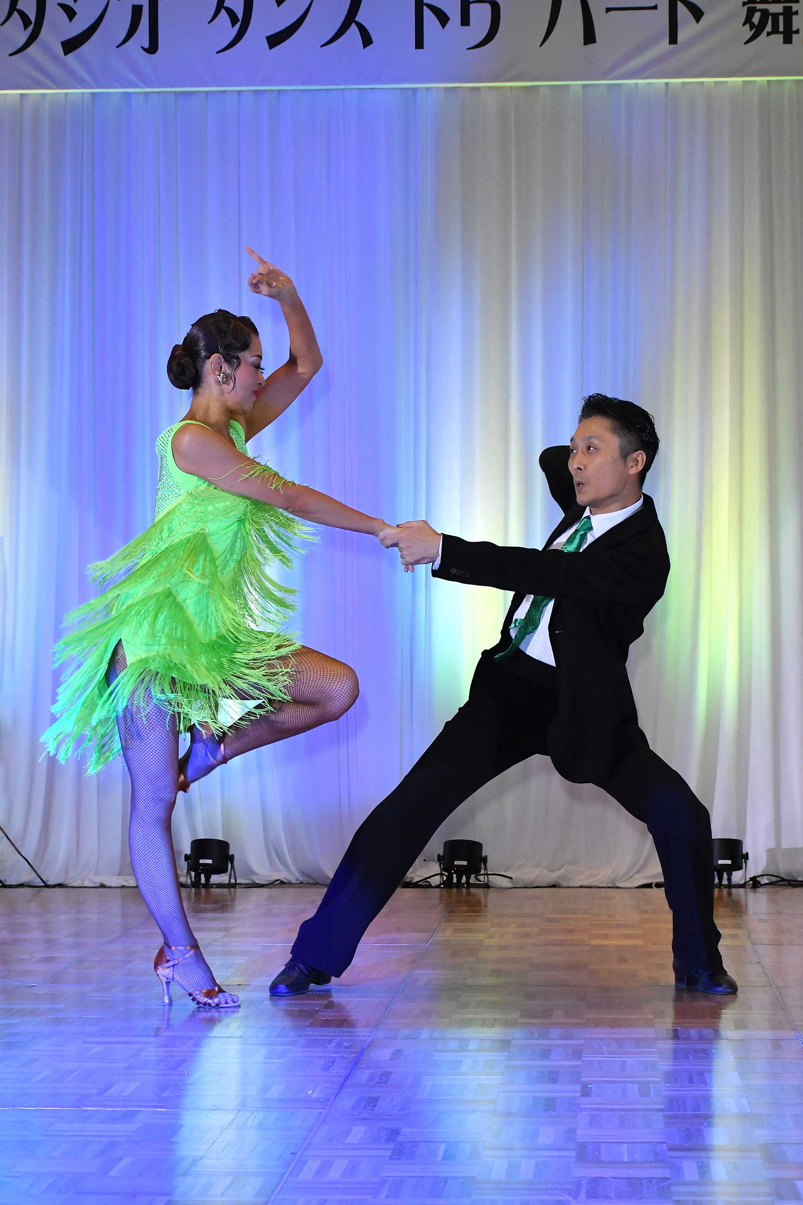 プロフェッショナルデモンストレーションでは、プロの先生達の迫力あるダンスとスペシャルゲストの久保田弓椰・徳野夏海組のショーアップされたダンスで会場を盛り上げて頂きました。